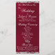 This romantic design features an elegant burgundy background with glitter borders, wedding ceremony details & thank you on the front with wedding party members on the back. Also available with different colored backgrounds for your wedding theme colors. (Glitter is simulated in the artwork). Designed to coordinate with the "Two Shall Become One - Hearts, Doves & Glitter" Wedding Collection. To change details, click «Personalize». To move the text or change the text size, font, or color click «Click to customize further»