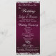 This romantic design features an elegant purple background with glitter borders, wedding ceremony details & thank you on the front with wedding party members on the back. Also available with different colored backgrounds for your wedding theme colors. (Glitter is simulated in the artwork). Designed to coordinate with the "Two Shall Become One - Hearts, Doves & Glitter" Wedding Collection. To change details, click «Personalize». To move the text or change the text size, font, or color click «Click to customize further»