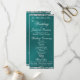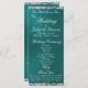 This romantic design features an elegant teal background with glitter borders, wedding ceremony details & thank you on the front with wedding party members on the back. Also available with different colored backgrounds for your wedding theme colors. (Glitter is simulated in the artwork). Designed to coordinate with the "Two Shall Become One - Hearts, Doves & Glitter" Wedding Collection. To change details, click «Personalize». To move the text or change the text size, font, or color click «Click to customize further»