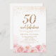 Elegant script gold & blush floral 50th birthday invitation