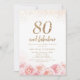 Elegant script gold & blush floral 80th birthday invitation