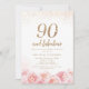 Elegant script gold & blush floral 90th birthday invitation