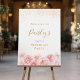 Modern chic script name, trendy faux gold glitter and blush pink watercolor floral design, elegant and stylish, great customized welcome sign for any age birthday party.