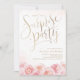 Elegant script gold blush floral surprise birthday invitation