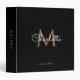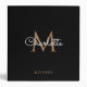 Elegant Script Gold Monogram Black Recipe 3 Ring Binder