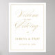 Subtle gold border with elegant calligraphy "welcome to our wedding" with editable names and date, custom colors for border and design elements.