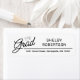 Elegant Script "Grad" return address label. This black and white design features script text and is accent with a graphic of a mortarboard.