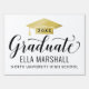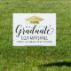 Celebrate your grad with stylish graduation announcement yard sign featuring a faux gold foil graduation cap with "Graduate" in black modern script and custom text for the grad's name and school.