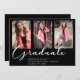 Elegant Script Graduation 3 Photo Black Invitation