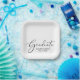Elegant graduation party paper plates featuring "Graduate" in a chic script and the grad's name and class year in simple modern typography.