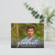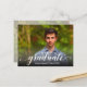The word "graduate" in an elegant white script along with graduate's name and class year SAVE THE DATE postcards for your Graduation Party or Graduation Ceremony. Put your photo on the front - we've added a black gradient overlay at the bottom so "graduate" is readable over your photo. Add the same or different photo on the back address side - we've added a soft photo overlay to the back image to make the information easier to read. MORE designs in our collection.