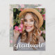 The word "graduate" in an elegant white script along with graduate's name and class year (or delete that line) SAVE THE DATE postcards for your Graduation Party or Graduation Ceremony. Add the same or different photo on the back *TIP: We just resized the same photo to a horizontal layout before we uploaded it for the back and it is behind a transparent layer for your text is easy to read. More designs in our store.