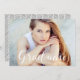 Elegant graduation announcement with "Graduate" displayed in a white script overlay. Personalize the front of the modern photo graduation announcement with your horizontal photo, name, and graduation year. The announcement reverses to display a gray and white hand-drawn herringbone pattern.