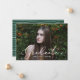 Celebrate your graduate’s milestone with this elegant photo graduation announcement, featuring their horizontal senior picture with "Graduate" displayed in stylish white script lettering. Personalize this timeless design by adding the graduate’s name, school name, and graduation year. The announcement reverses to showcase a modern green and white hand-drawn stripe pattern, adding a unique touch. Perfect for high school and college graduates, this customizable graduation announcement is a beautiful way to share the exciting news with family and friends.