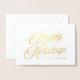 This elegant script photo holiday card features the text "Happy Holidays" in gold foil on the front.