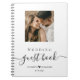 Elegant Chic Script Heart Custom Personalized Photo Wedding Guest Book. Features modern „guest book” text in hand lettered calligraphy, wedding date and couples first name wit love heart shape on white background. Customize with your favorite photo and personalize your information. It great for wedding or anniversary day.
