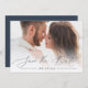 Announce your wedding date in unforgettable style with these simple and elegant photo save the date cards, featuring a full bleed horizontal or landscape oriented photo with "save the date" overlaid in navy blue calligraphy script lettering along the bottom. Your names, wedding date, and wedding location appear beneath in modern lettering. Personalize the back with additional details, such as your wedding website.