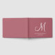 A simple elegant white script initial monogram terracotta wedding guest book for your reception. A keepsake from your wedding.