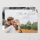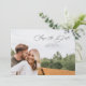 This Save the Date announcement card features an elegant script heading, your favorite photo and your custom text. The back also has a photo and more details. Use the template to add your information.