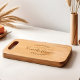 An elegant personalized engraved cutting board features elegant leaf elements along with the couple's first name and last name along with the year established. A wonderful and thoughtful gift for a couple, newlywed, anniversary, housewarming gift, a personalized Charcuterie Board for parties, etc.