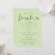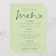 Elegant Script Lime Cream Green Wedding Menu Card, with a stylish set script for the header Menu. Easily personalise the rest of the text to your own details which includes alternatives for your vegan or vegetarian options. You can also change text styles and colors as well as the background colors via the customise further option if you wish.