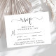 Elegant wedding RSVP card featuring "rsvp" in a chic calligraphy script with swashes, simple modern typography, your personalized menu entree options and your names joined together by a heart on the back.