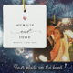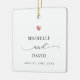 Modern wedding ornament with your custom names in an elegant swirly script calligraphy design alongside a printed rose gold heart and the date of your celebration. On the back is space for your favorite photo of the nuptials. This is the minimalist black and white version. Great keepsake gifts for newlyweds!