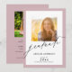 This elegant graduation party invitation offers two photo frames, one on the front and a second on the back. The design is accented with trendy handwriting style text and a dusty rose colored border. Personalize the backside with your party invitation details.