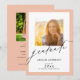 This elegant graduation party invitation offers two photo frames, one on the front and a second on the back. The design is accented with stylish handwriting style text and a light orange colored border. Personalize the backside with your party invitation details.