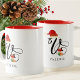 Add a touch of holiday charm to your morning routine with this personalized Christmas mug, featuring a stylized letter V adorned with a Santa hat and stocking. The minimalist layout and red interior make it a standout gift for friends, coworkers, or loved ones.