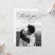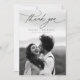 Express your gratitude with our Elegant Script Modern Photo Wedding Thank You Card. This card features a handwritten calligraphy script, paired with a stunning black and white photo of the newlyweds. The simple and minimalistic design exudes classic rustic elegance, making it perfect for contemporary couples. The digital overlay type adds a modern touch to this chic and timeless card.