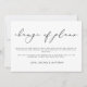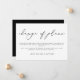 A simple and elegant design for your to announce a change in your wedding plans. The design features a headline "change of plans" in black modern calligraphy, your message in black sans serif font, on a white background. The reverse is in solid black.