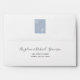Simple, minimalist, elegant, modern calligraphy script white and dusty blue wedding invitation 5x7 envelope with burnt orange color inside, monogram - initials at the top flap and return address.