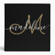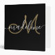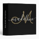 Elegant Script Monogram Black Gold 3 Ring Binder