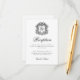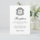 This formal elegant wedding reception enclosure card in classic black and white, features a vintage crest with fancy script monogram initials of the bride and groom.