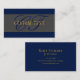 Elegant Script Monogram Dark Navy Blue Grey & Gold Business Card
