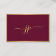 Elegant Script Monogram Initial Bordeaux Gold Euro Business Card