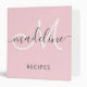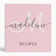 Elegant Script Monogram Name Blush Pink Recipe 3 Ring Binder