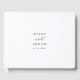 This elegant script monogram wedding guest book is perfect for a simple wedding. The minimalist black and white design features fancy romantic typography with modern glam style. Customizable in any color. Keep the design minimal and classy, as is, or personalize it by adding your own graphics and artwork. Personalize the front cover with the names of the bride and groom and the wedding date.