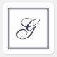 Elegant script monogram with double lined border square stickers. White with navy blue text.