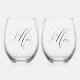 Elegant Script "Mrs and Mrs" Lesbian Couple Stemless Wine Glass