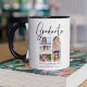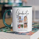 Elegant Script Multi Photo Graduation Graduate Coffee Mug features five of your favorite photos of your college or high school graduate with the swirly modern black calligraphy script overlay "Graduate". Simple, stylish and classy. Created by ©Evco Studio www.zazzle.com/store/evcostudio