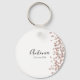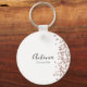 A simple and elegant button key chain that is easy to customize for many different celebrations. Add your name in a black handwritten font and the date in a modern typeface below. A splash of pink confetti decorates the right hand side.