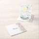 A simple and elegant paper coaster that is easy to customize for many different celebrations. Add your name in a black handwritten font and the date in a modern typeface below. A splash of pink confetti decorates the right hand side.