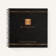 Luxury exclusive looking monogrammed stylish personalized sketchbook journal featuring a faux gold copper metallic glitter square and lines over a stylish classy black leather look background. +++++++++ Personalize it with your text, your name and monogram initials.