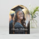 Arch shaped photo announcement card featuring your photo and the graduate's name in an elegant caliigraphy script font with the year below. Add an additional photo and a custom message on the back.