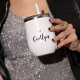 Elegant Script Name & Rose Gold Heart Thermal Wine Tumbler