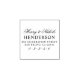Easily personalize these custom Elegant Script Names Wedding Return Address rubber stamps with your own names and address. To customize these rubber stamps, click on "Personalize this template" and change the text in the boxes provided. Available with different ink pad colors (not included) in square sizes 1 inch, 2 inch, or 2.5 inch or rectangular sizes 1x2.5 inch, 1.5x3 inch and 4x5 inch with a handle or without a handle. PLEASE NOTE: Our default sizes for wooden rubber stamps are 1 inch square or 1x2.5 inch rectangle. For use as a return address stamp most people will require a larger size than this. Please view your design on the monitor as close to actual size as possible to ensure that the text prints at the expected size. These return address rubber stamps are laser engraved on foam cushion. No minimum order quantity.