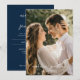 Elegant Script Navy Blue Photo QR Code Wedding Invitation