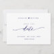 Announce your wedding date with this beautiful wedding save the date card. Modern hand written Script details in navy blue faux foil in the front over white background. Back in navy with unique Save the Date stamp/monogram with couples names in white. Clean and simple style. Navy and white design. Same design with both front and back in white with navy blue text also available. Area for wedding website, more information or/and message for your guests (i.e. "Can't wait to see you there!").